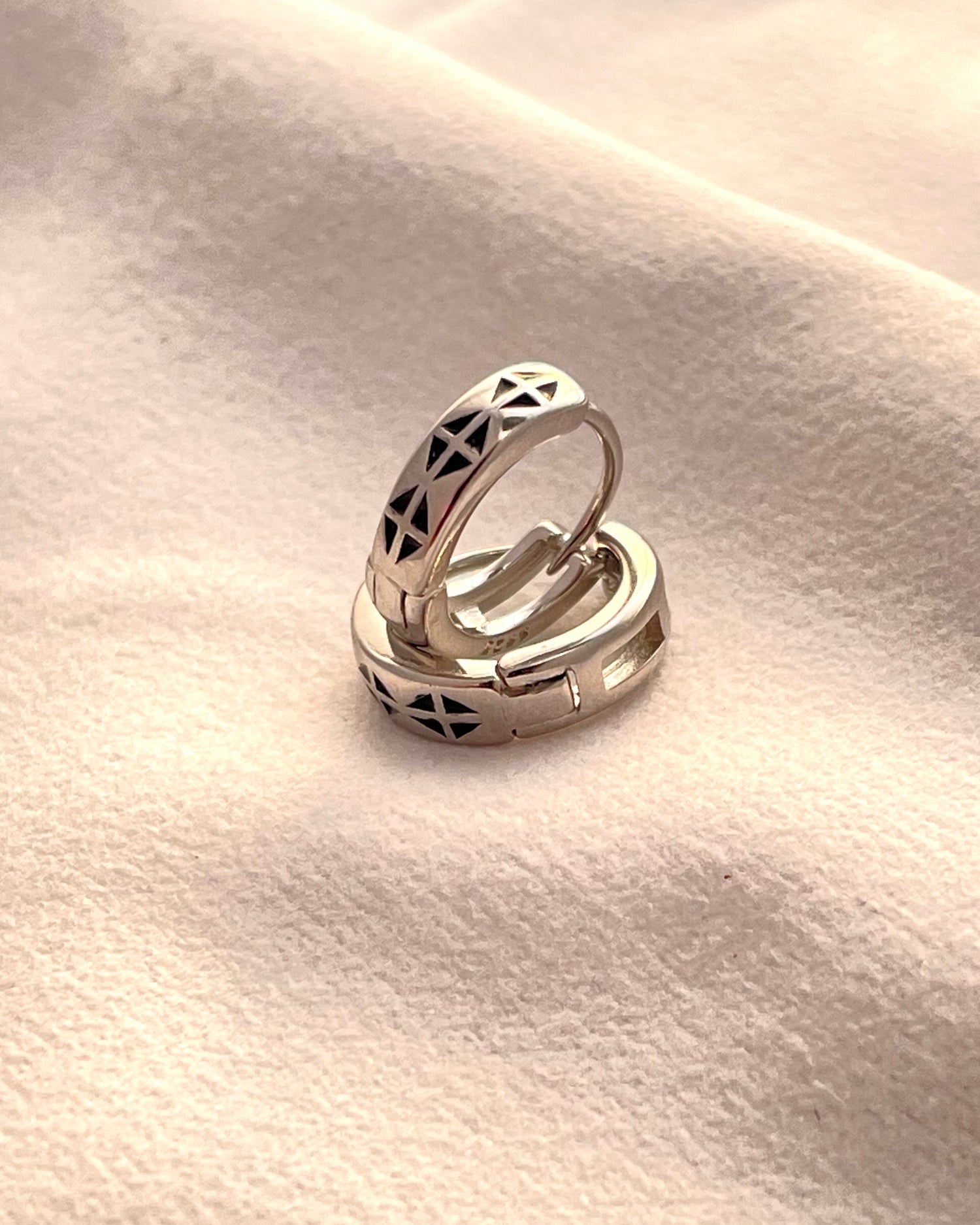Chevron Enamel Huggie Hoop Bali in 925 Sterling Silver